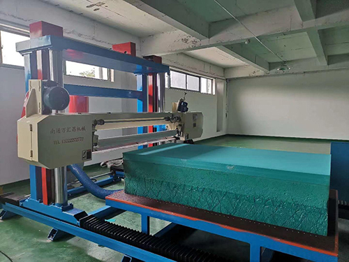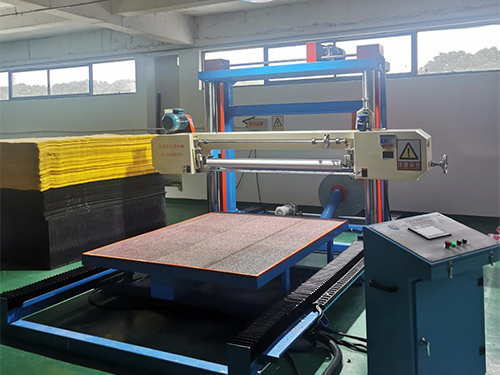 本機(jī)主要是把塊狀泡綿切成薄片,采用自動數(shù)字控制,根據(jù)需要切割的厚度和泡綿的密度,通過控制箱設(shè)定數(shù)值。工作臺采用不銹鋼板并  帶吸風(fēng)裝置。為了防止切割的泡綿滑動,可加壓輥,操作簡便,切割準(zhǔn)確。